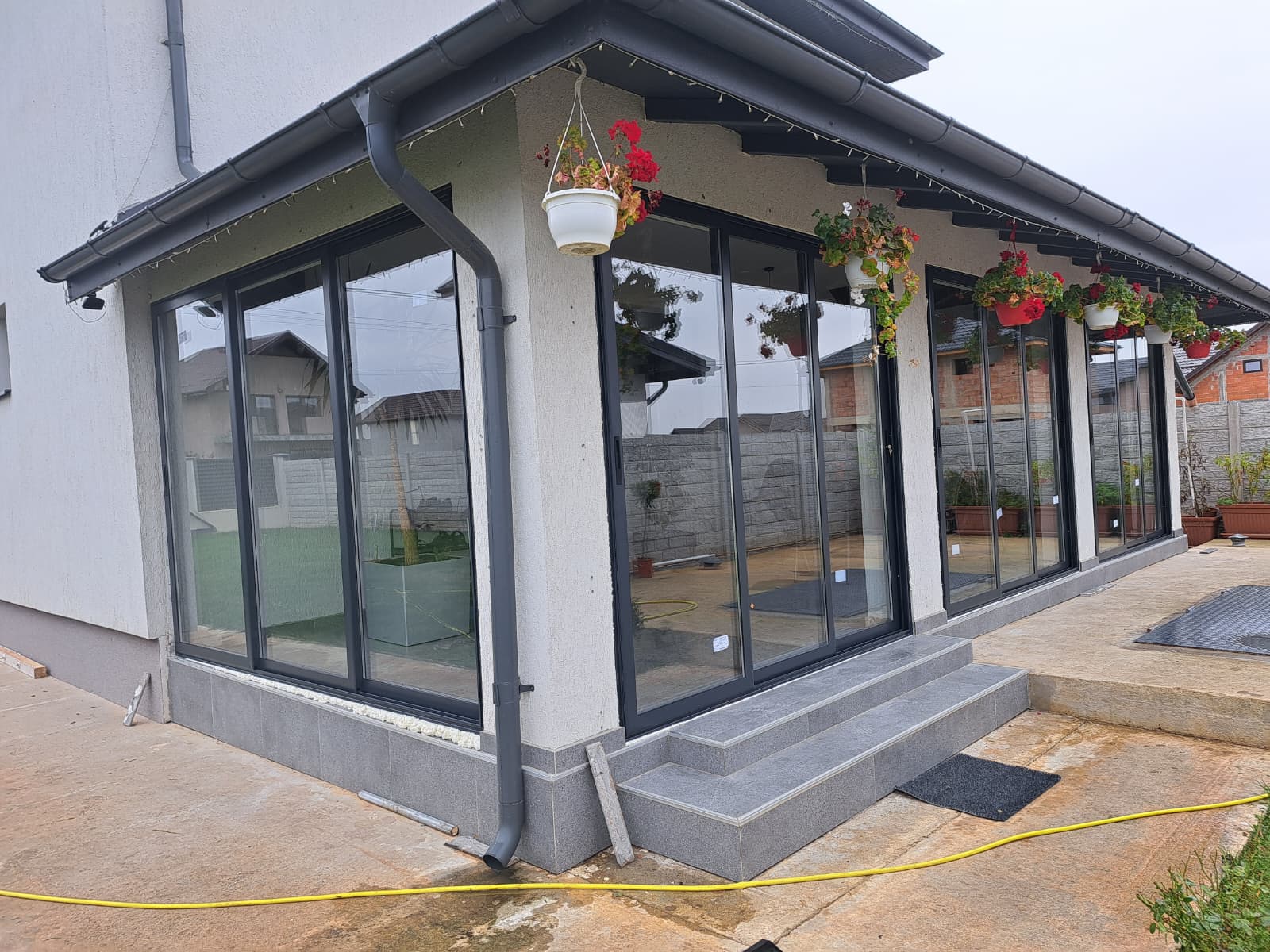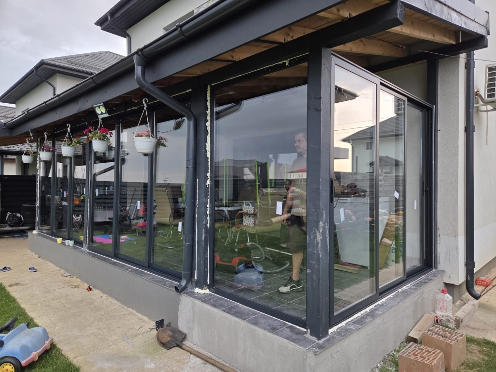 Închideri terase foișoare balcoane cu uși glisante din aluminiu cu geam termopan de 22 București și Ilfov montaj gratuit 0763 901 600.