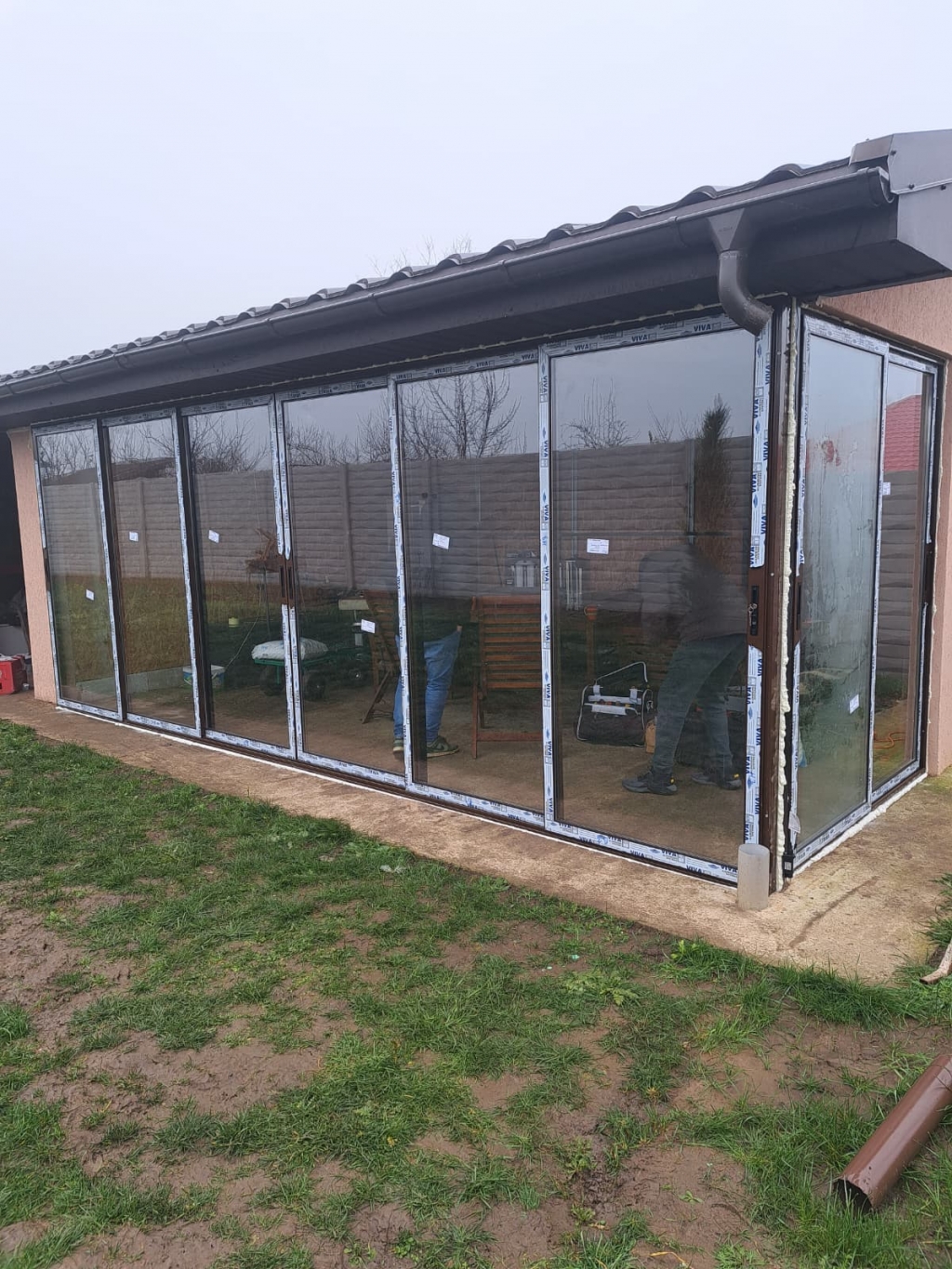 Ușile glisante au perie de jur împrejur pentru a avea o izolație mai bună. Rolele de culisare au o calitate foarte bună. Sticla 4x14x4 geam termopan.